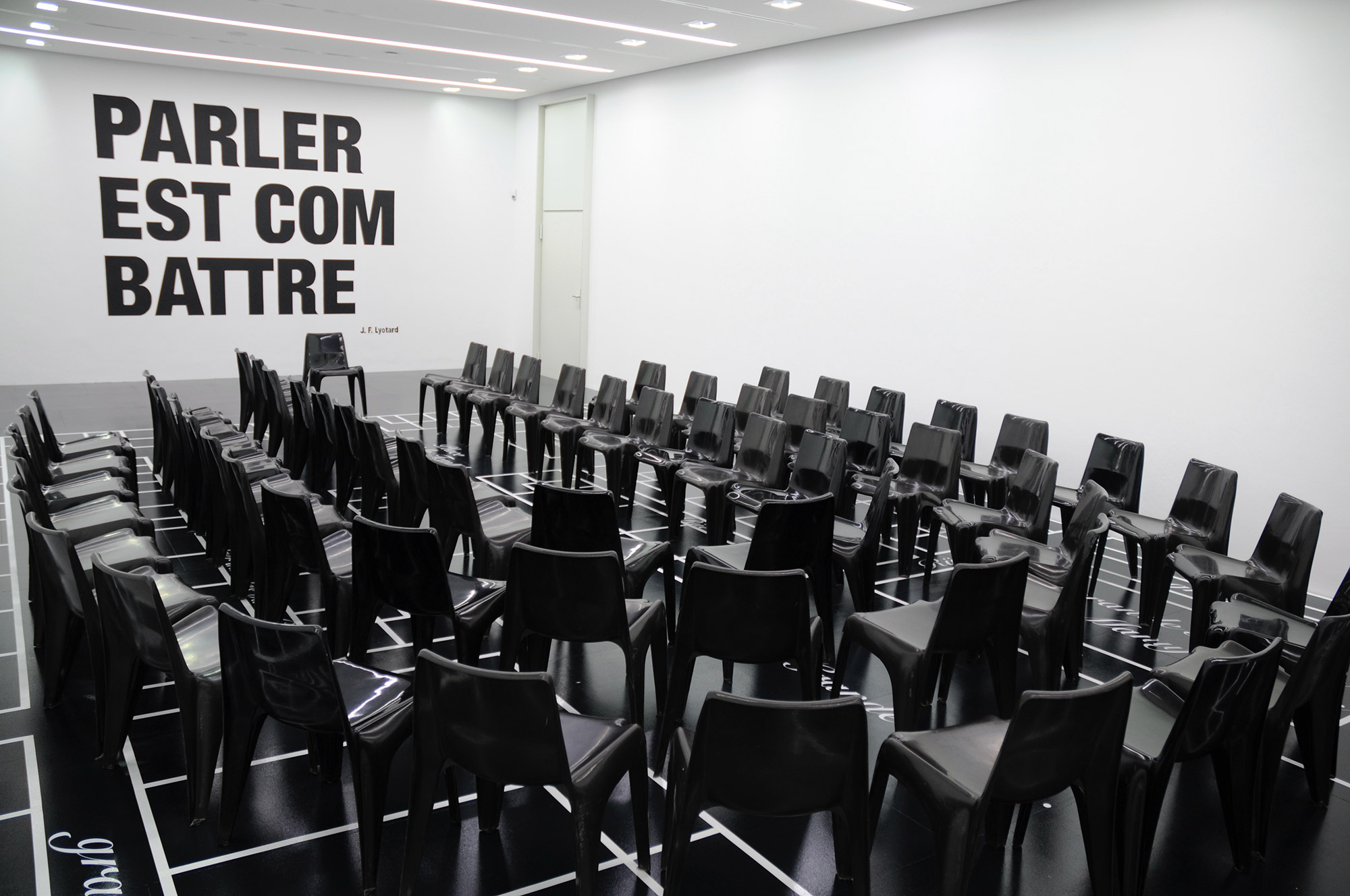 Räumliche Strukturen sind Teil gesellschaftlicher Strukturen und ermöglichen Handeln ebenso, wie sie es einschränken. Bauen, Errichten, Vermessen und Markieren sind Aushandlungsprozesse, kommunikative Praktiken, die Wirklichkeit erst hervorbringen. Die Erlanger Ausstellung Guerre en Forme widmet sich der Konstitution von Räumen und deren Verhandelbarkeit; der herrschenden Ordnung als vorläufigem Ergebnis von Auseinandersetzungen zwischen Kontrahenten.