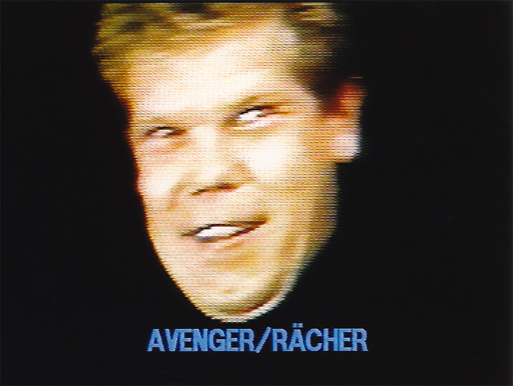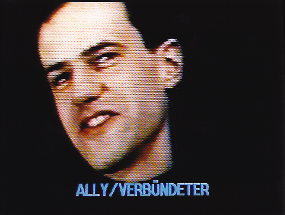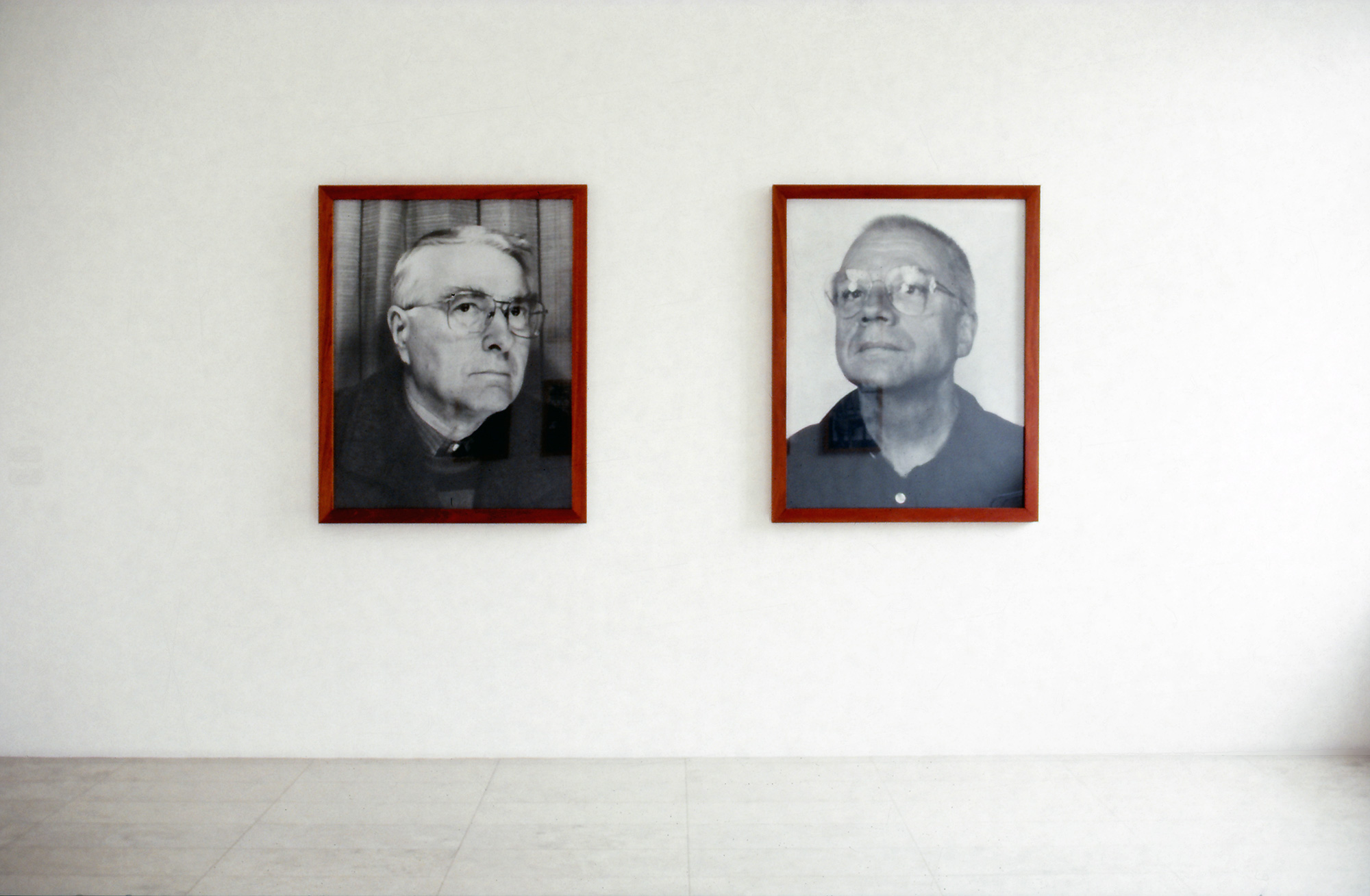 Der Raum, der der Akademie gewidmet war, zeigte in schweren Mahagonirahmen hochvergrößerte Fotografien unserer Professoren Peter Dreher und Wilhelm Loth. Beide hatten uns für die Arbeit Automatenfotos überlassen. Die monumentale Skalierung verwandelt das beiläufige Dokument in ein nahezu kanonisches Porträt, das die Aura des „Meisters“ heraufzubeschwören scheint und zugleich seine Hybris sichtbar macht.